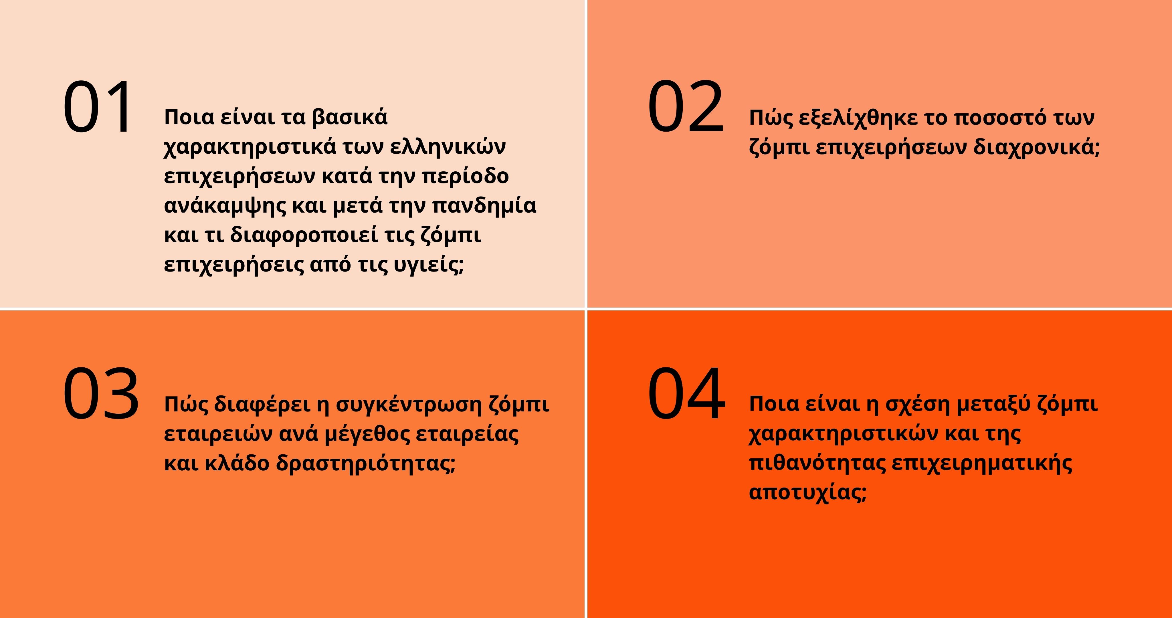 Το φαινόμενο των «ζόμπι επιχειρήσεων» αποτελεί ένα θέμα που διαχρονικά έχει απασχολήσει την PwC, η οποία έχει ήδη δημοσιεύσει και στο παρελθόν μελέτες. Η παρούσα έρευνα εξετάζει την περίοδο 2015–2023 και επιχειρεί να απαντήσει σε τέσσερα κρίσιμα ερωτήματα: